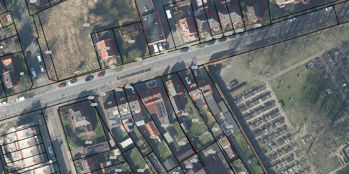 Het perceel waarop Enschedesestraat 7 staat heeft een oppervlakte van 582 m². Dit is een groot perceel. De perceeloppervlakte wordt geregistreerd door het Kadaster. Gedetailleerde informatie over de maten van dit perceel kunt u vinden in het rapport Kadastrale kaart met maatvoering van Enschedesestraat 7.