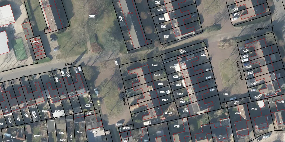 Het perceel waarop Ericahof 40 staat heeft een oppervlakte van 321 m². Dit is een groot perceel. De perceeloppervlakte wordt geregistreerd door het Kadaster. Gedetailleerde informatie over de maten van dit perceel kunt u vinden in het rapport Kadastrale kaart met maatvoering van Ericahof 40.