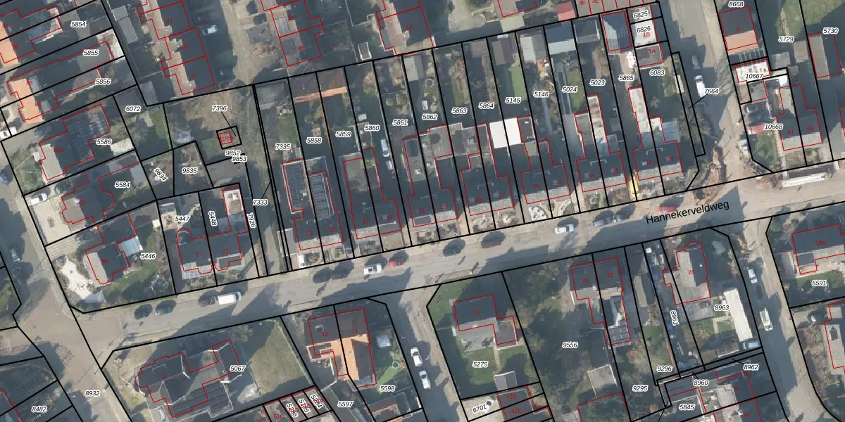 Hannekerveldweg 21 is gelegen op kadastraal perceel LSR00H5861. Deze kadastrale aanduiding is uniek en wordt gebruikt door het Kadaster om eigendomsrechten en andere zakelijke rechten vast te leggen. Het perceel maakt onderdeel uit van de kadastrale gemeente Losser.