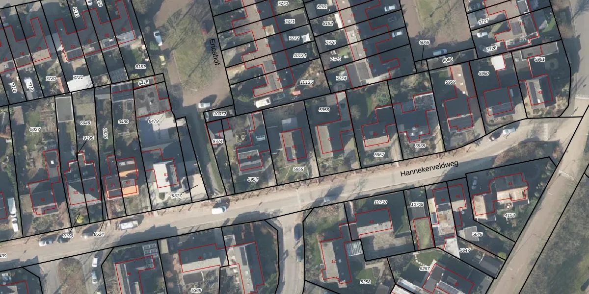 Hannekerveldweg 65 is gelegen op kadastraal perceel LSR00H5955. Deze kadastrale aanduiding is uniek en wordt gebruikt door het Kadaster om eigendomsrechten en andere zakelijke rechten vast te leggen. Het perceel maakt onderdeel uit van de kadastrale gemeente Losser.