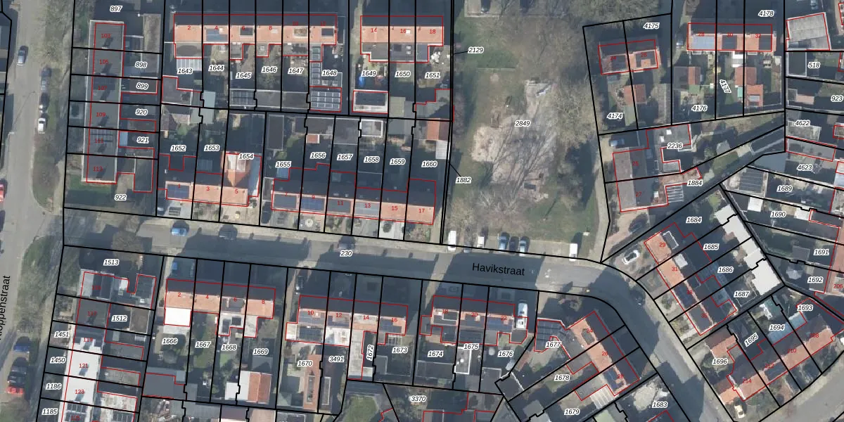Het perceel waarop Havikstraat 17 staat heeft een oppervlakte van 244 m². Dit is een middelgroot perceel. De perceeloppervlakte wordt geregistreerd door het Kadaster. Gedetailleerde informatie over de maten van dit perceel kunt u vinden in het rapport Kadastrale kaart met maatvoering van Havikstraat 17.