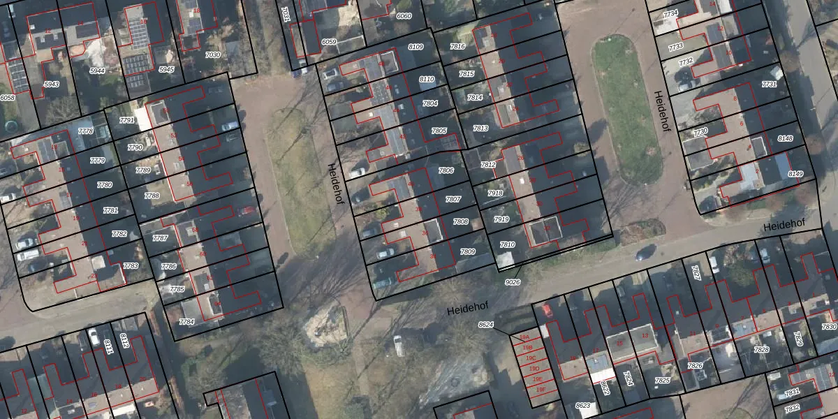 Het perceel waarop Heidehof 38 staat heeft een oppervlakte van 174 m². Dit is een middelgroot perceel. De perceeloppervlakte wordt geregistreerd door het Kadaster. Gedetailleerde informatie over de maten van dit perceel kunt u vinden in het rapport Kadastrale kaart met maatvoering van Heidehof 38.