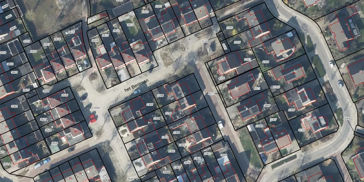 Het perceel waarop het Bentman 7 staat heeft een oppervlakte van 259 m². Dit is een middelgroot perceel. De perceeloppervlakte wordt geregistreerd door het Kadaster. Gedetailleerde informatie over de maten van dit perceel kunt u vinden in het rapport Kadastrale kaart met maatvoering van het Bentman 7.
