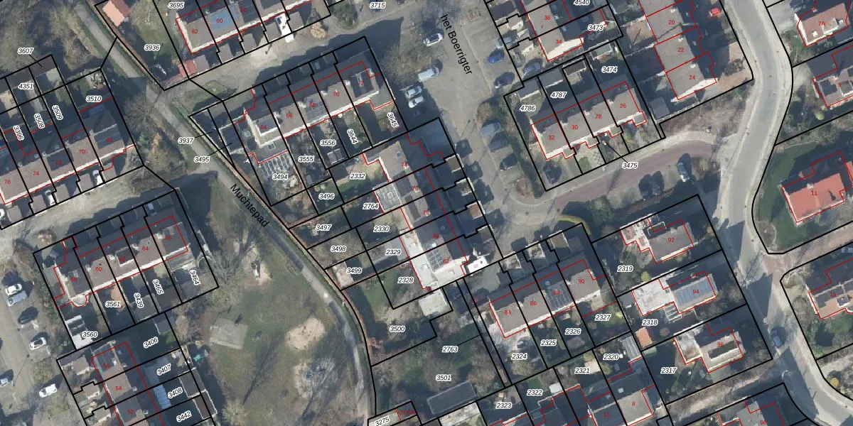 Het perceel waarop het Boerrigter 78 staat heeft een oppervlakte van 173 m². Dit is een middelgroot perceel. De perceeloppervlakte wordt geregistreerd door het Kadaster. Gedetailleerde informatie over de maten van dit perceel kunt u vinden in het rapport Kadastrale kaart met maatvoering van het Boerrigter 78.