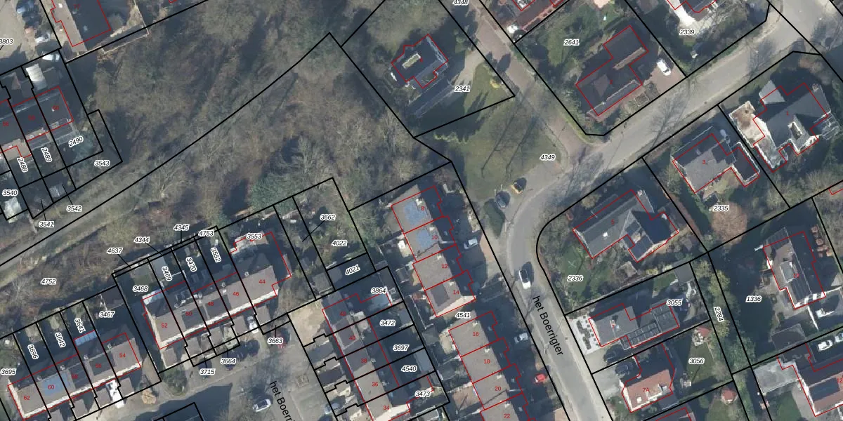 Het perceel waarop het Boerrigter 8 staat heeft een oppervlakte van 1851 m². Dit is een zeer groot perceel. De perceeloppervlakte wordt geregistreerd door het Kadaster. Gedetailleerde informatie over de maten van dit perceel kunt u vinden in het rapport Kadastrale kaart met maatvoering van het Boerrigter 8.