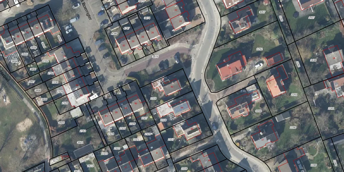 Het perceel waarop het Boerrigter 92 staat heeft een oppervlakte van 384 m². Dit is een groot perceel. De perceeloppervlakte wordt geregistreerd door het Kadaster. Gedetailleerde informatie over de maten van dit perceel kunt u vinden in het rapport Kadastrale kaart met maatvoering van het Boerrigter 92.