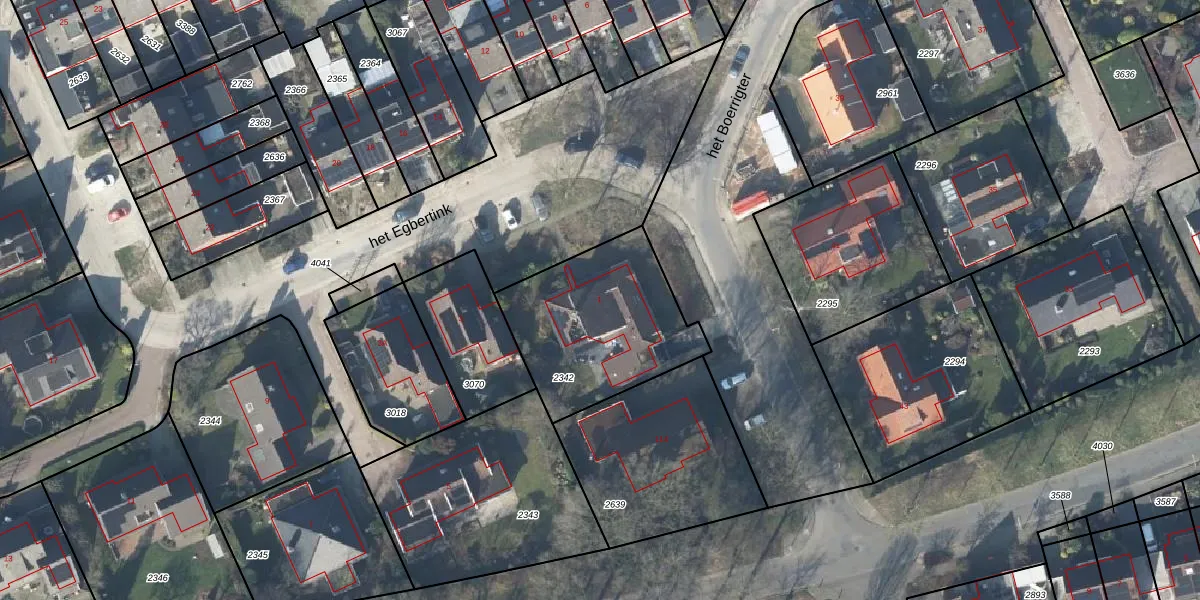 het Egbertink 1 is gelegen op kadastraal perceel LSR00N2342. Deze kadastrale aanduiding is uniek en wordt gebruikt door het Kadaster om eigendomsrechten en andere zakelijke rechten vast te leggen. Het perceel maakt onderdeel uit van de kadastrale gemeente Losser.