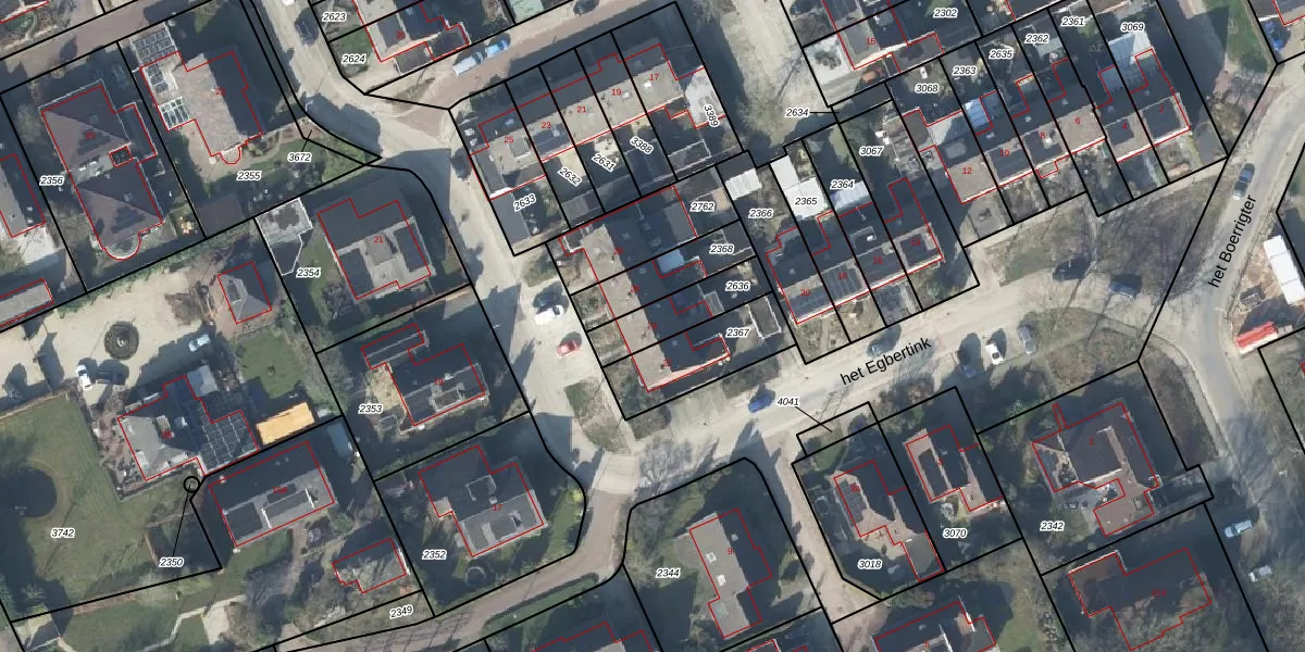 Het perceel waarop het Egbertink 24 staat heeft een oppervlakte van 172 m². Dit is een middelgroot perceel. De perceeloppervlakte wordt geregistreerd door het Kadaster. Gedetailleerde informatie over de maten van dit perceel kunt u vinden in het rapport Kadastrale kaart met maatvoering van het Egbertink 24.