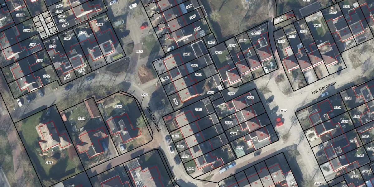 Het perceel waarop het Egbertink 40 staat heeft een oppervlakte van 270 m². Dit is een middelgroot perceel. De perceeloppervlakte wordt geregistreerd door het Kadaster. Gedetailleerde informatie over de maten van dit perceel kunt u vinden in het rapport Kadastrale kaart met maatvoering van het Egbertink 40.