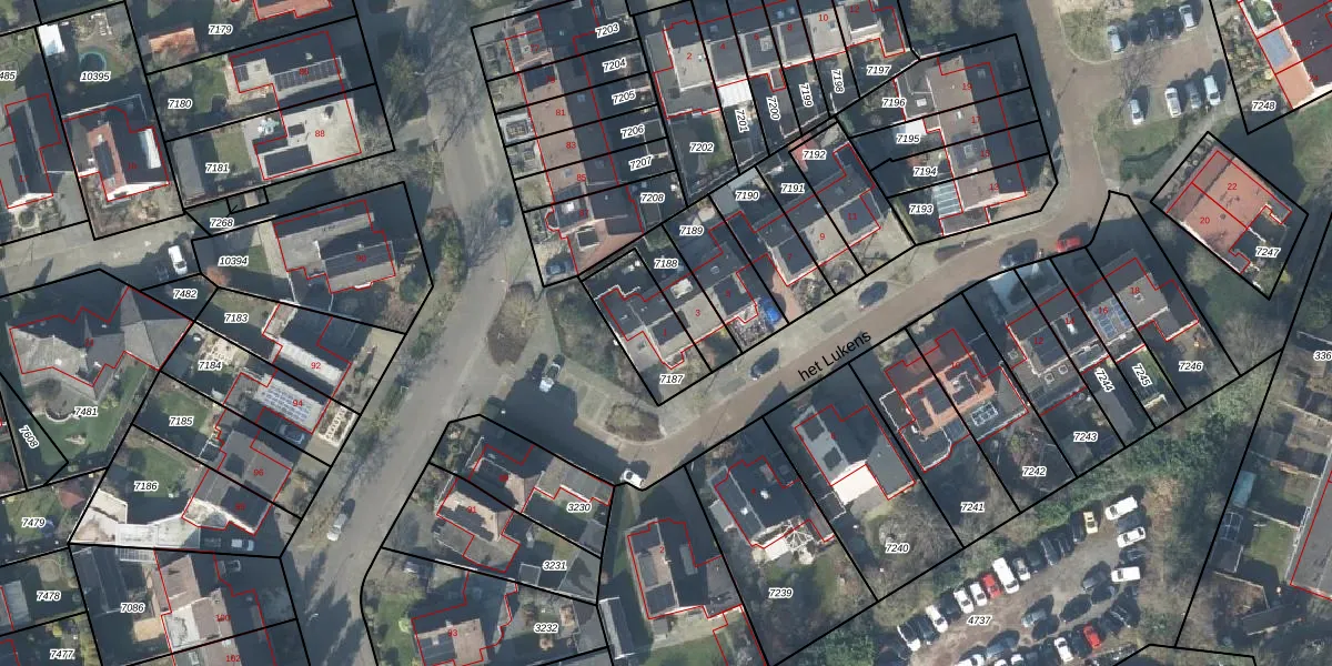 Het perceel waarop het Lukens 1 staat heeft een oppervlakte van 208 m². Dit is een middelgroot perceel. De perceeloppervlakte wordt geregistreerd door het Kadaster. Gedetailleerde informatie over de maten van dit perceel kunt u vinden in het rapport Kadastrale kaart met maatvoering van het Lukens 1.