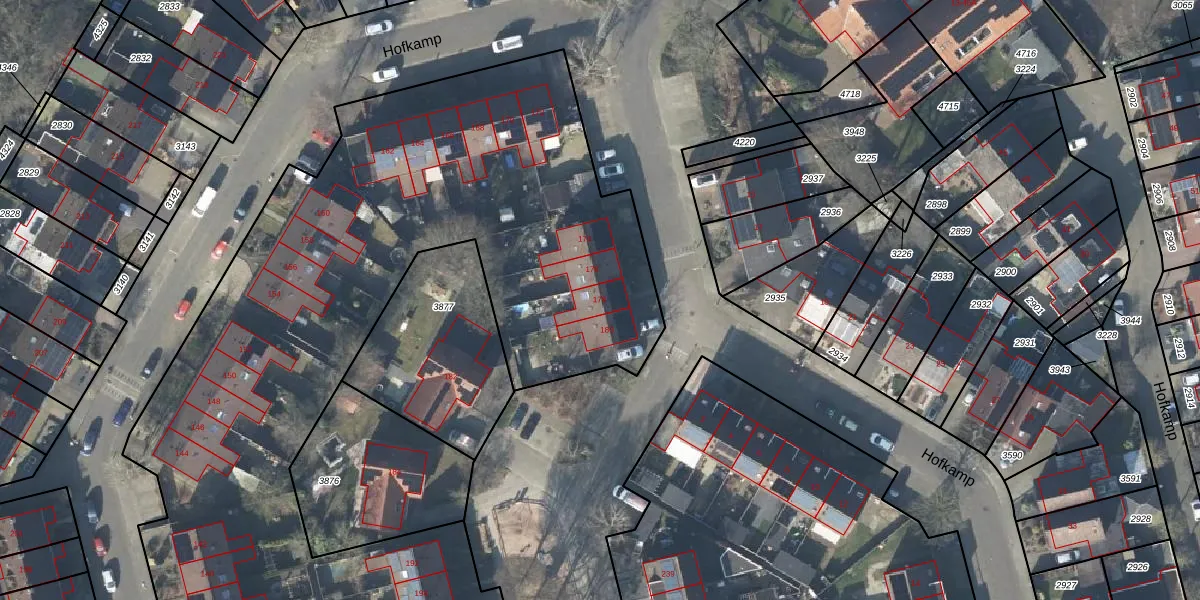 Het perceel waarop Hofkamp 178 staat heeft een oppervlakte van 7312 m². Dit is een zeer groot perceel. De perceeloppervlakte wordt geregistreerd door het Kadaster. Gedetailleerde informatie over de maten van dit perceel kunt u vinden in het rapport Kadastrale kaart met maatvoering van Hofkamp 178.
