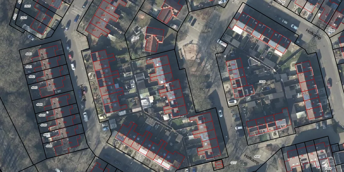 Het perceel waarop Hofkamp 198 staat heeft een oppervlakte van 7312 m². Dit is een zeer groot perceel. De perceeloppervlakte wordt geregistreerd door het Kadaster. Gedetailleerde informatie over de maten van dit perceel kunt u vinden in het rapport Kadastrale kaart met maatvoering van Hofkamp 198.