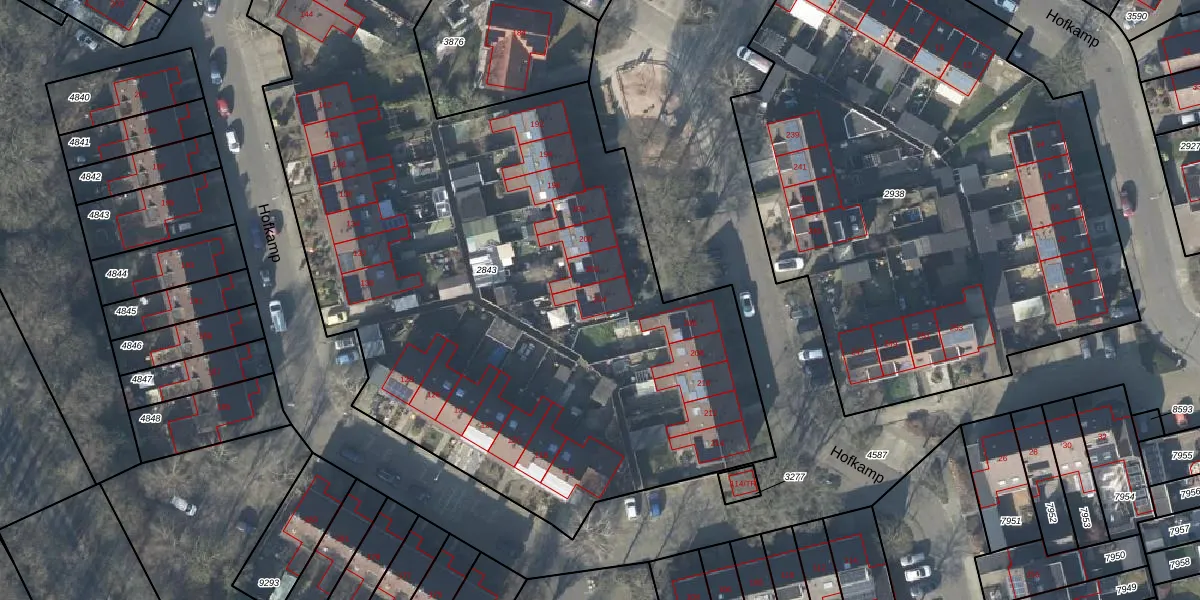 Het perceel waarop Hofkamp 204 staat heeft een oppervlakte van 7312 m². Dit is een zeer groot perceel. De perceeloppervlakte wordt geregistreerd door het Kadaster. Gedetailleerde informatie over de maten van dit perceel kunt u vinden in het rapport Kadastrale kaart met maatvoering van Hofkamp 204.