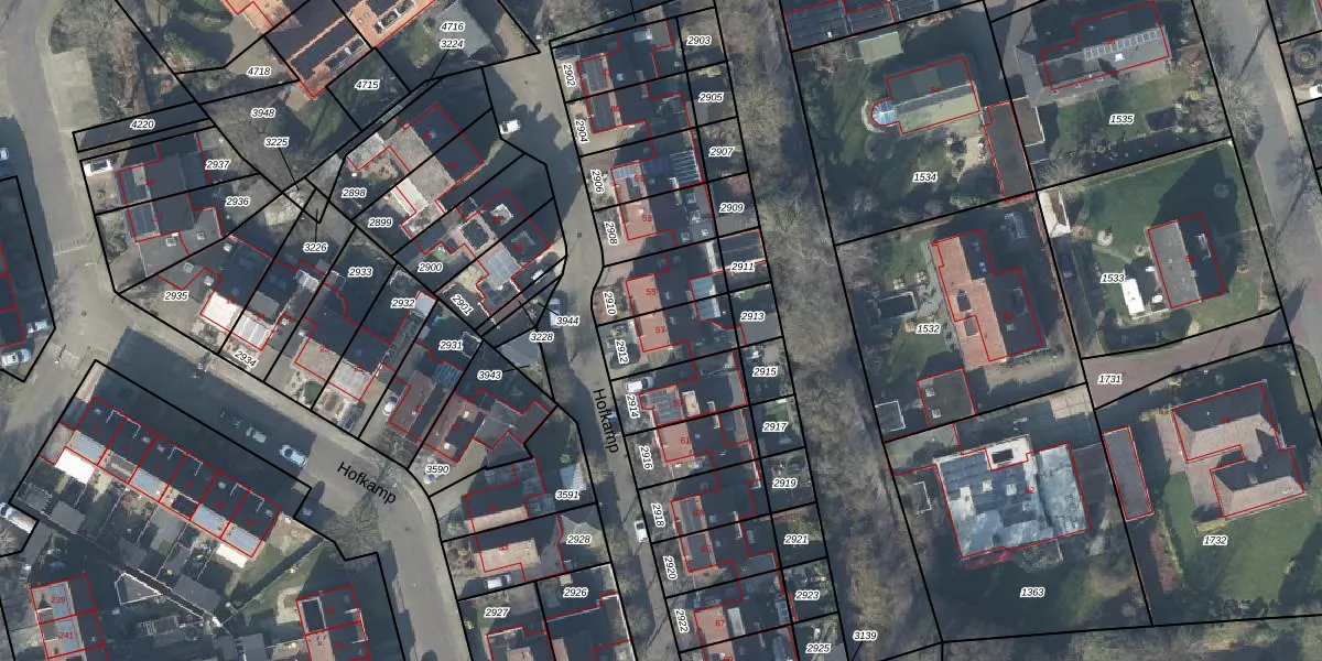 Hofkamp 57 is gelegen op kadastraal perceel LSR00N2912. Deze kadastrale aanduiding is uniek en wordt gebruikt door het Kadaster om eigendomsrechten en andere zakelijke rechten vast te leggen. Het perceel maakt onderdeel uit van de kadastrale gemeente Losser.