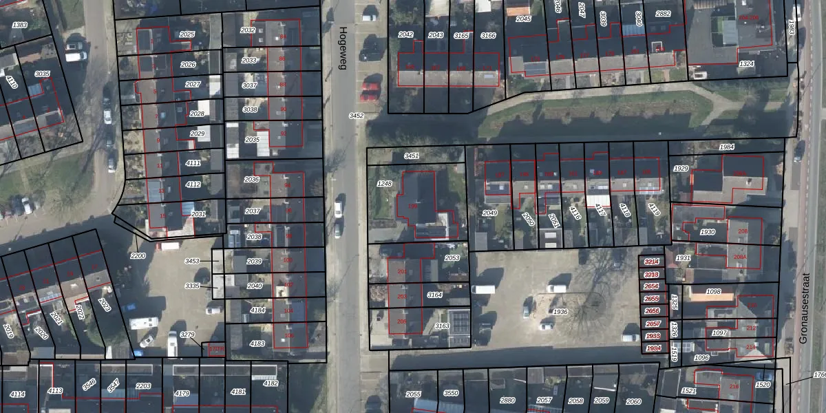 Het perceel waarop Hogeweg 199 staat heeft een oppervlakte van 458 m². Dit is een groot perceel. De perceeloppervlakte wordt geregistreerd door het Kadaster. Gedetailleerde informatie over de maten van dit perceel kunt u vinden in het rapport Kadastrale kaart met maatvoering van Hogeweg 199.