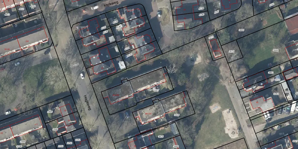 Het perceel waarop Hogeweg 65-C staat heeft een oppervlakte van 772 m². Dit is een groot perceel. De perceeloppervlakte wordt geregistreerd door het Kadaster. Gedetailleerde informatie over de maten van dit perceel kunt u vinden in het rapport Kadastrale kaart met maatvoering van Hogeweg 65-C.
