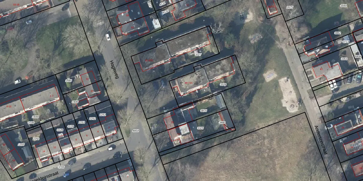 Het perceel waarop Hogeweg 71-C staat heeft een oppervlakte van 622 m². Dit is een groot perceel. De perceeloppervlakte wordt geregistreerd door het Kadaster. Gedetailleerde informatie over de maten van dit perceel kunt u vinden in het rapport Kadastrale kaart met maatvoering van Hogeweg 71-C.