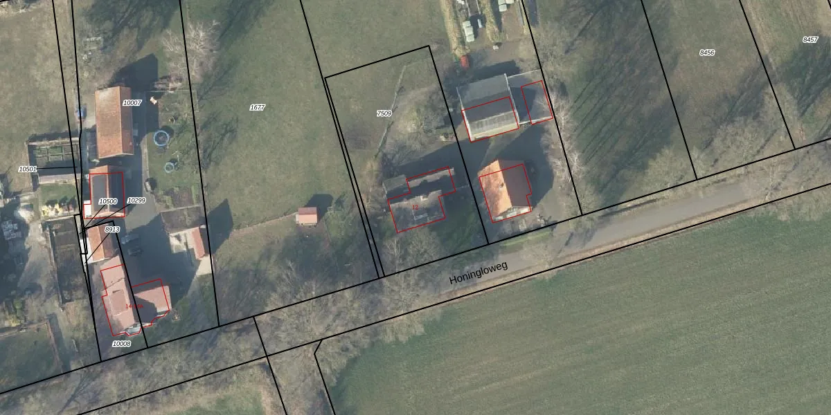 Honingloweg 12 is gelegen op kadastraal perceel LSR00H7509. Deze kadastrale aanduiding is uniek en wordt gebruikt door het Kadaster om eigendomsrechten en andere zakelijke rechten vast te leggen. Het perceel maakt onderdeel uit van de kadastrale gemeente Losser.
