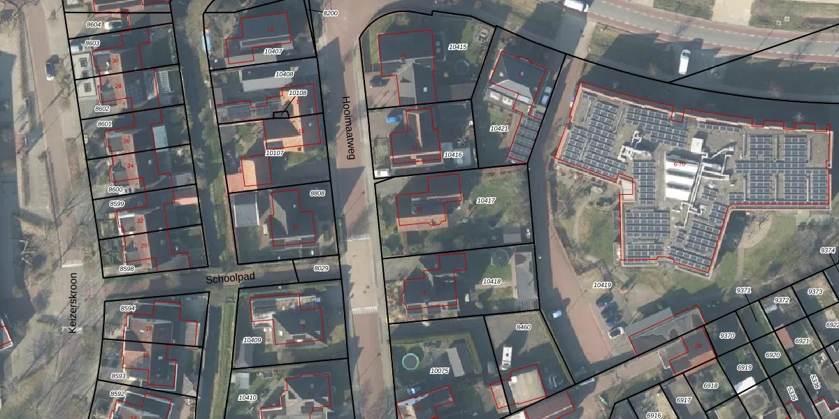 Het perceel waarop Hooimaatweg 10 staat heeft een oppervlakte van 714 m². Dit is een groot perceel. De perceeloppervlakte wordt geregistreerd door het Kadaster. Gedetailleerde informatie over de maten van dit perceel kunt u vinden in het rapport Kadastrale kaart met maatvoering van Hooimaatweg 10.