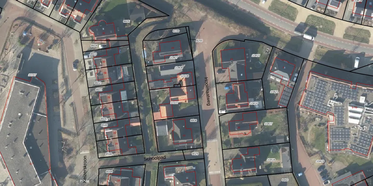 Het perceel waarop Hooimaatweg 15 staat heeft een oppervlakte van 415 m². Dit is een groot perceel. De perceeloppervlakte wordt geregistreerd door het Kadaster. Gedetailleerde informatie over de maten van dit perceel kunt u vinden in het rapport Kadastrale kaart met maatvoering van Hooimaatweg 15.