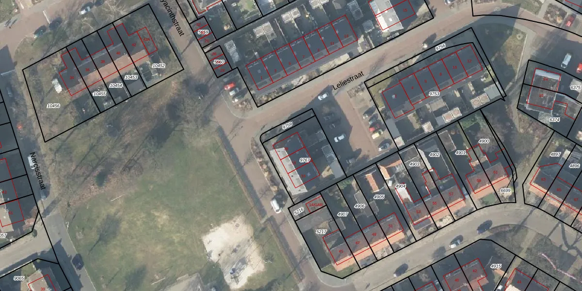 Het perceel waarop Hyacinthstraat 20 staat heeft een oppervlakte van 491 m². Dit is een groot perceel. De perceeloppervlakte wordt geregistreerd door het Kadaster. Gedetailleerde informatie over de maten van dit perceel kunt u vinden in het rapport Kadastrale kaart met maatvoering van Hyacinthstraat 20.