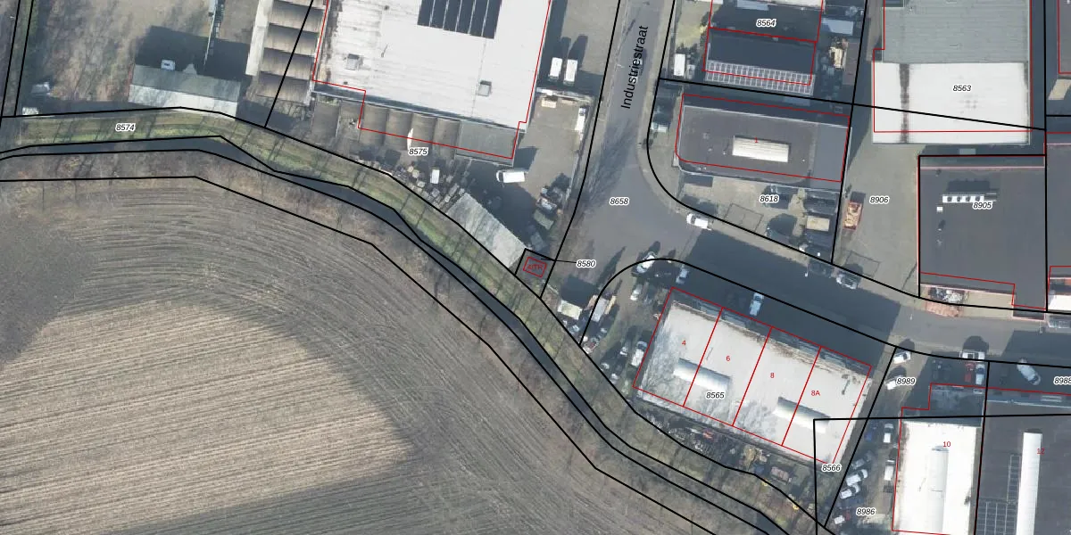 Het perceel waarop Industriestraat 4-TR staat heeft een oppervlakte van 39 m². Dit is een klein perceel. De perceeloppervlakte wordt geregistreerd door het Kadaster. Gedetailleerde informatie over de maten van dit perceel kunt u vinden in het rapport Kadastrale kaart met maatvoering van Industriestraat 4-TR.