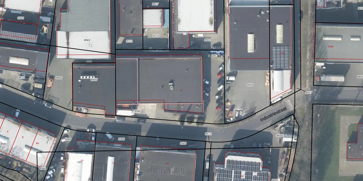 Industriestraat 5 is gelegen op kadastraal perceel LSR00I8560. Deze kadastrale aanduiding is uniek en wordt gebruikt door het Kadaster om eigendomsrechten en andere zakelijke rechten vast te leggen. Het perceel maakt onderdeel uit van de kadastrale gemeente Losser.