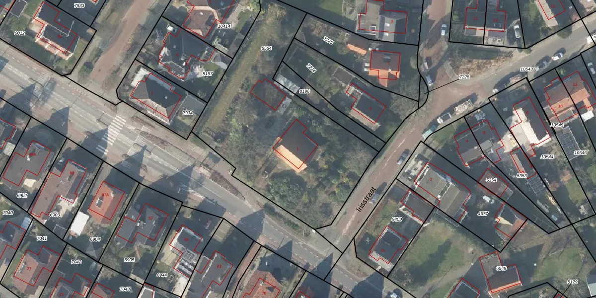 Het perceel waarop Irisstraat 1 staat heeft een oppervlakte van 2343 m². Dit is een zeer groot perceel. De perceeloppervlakte wordt geregistreerd door het Kadaster. Gedetailleerde informatie over de maten van dit perceel kunt u vinden in het rapport Kadastrale kaart met maatvoering van Irisstraat 1.