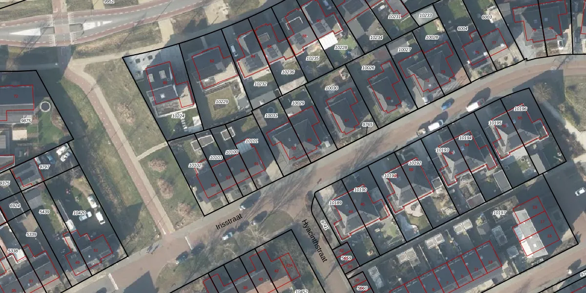 Het perceel waarop Irisstraat 63 staat heeft een oppervlakte van 258 m². Dit is een middelgroot perceel. De perceeloppervlakte wordt geregistreerd door het Kadaster. Gedetailleerde informatie over de maten van dit perceel kunt u vinden in het rapport Kadastrale kaart met maatvoering van Irisstraat 63.