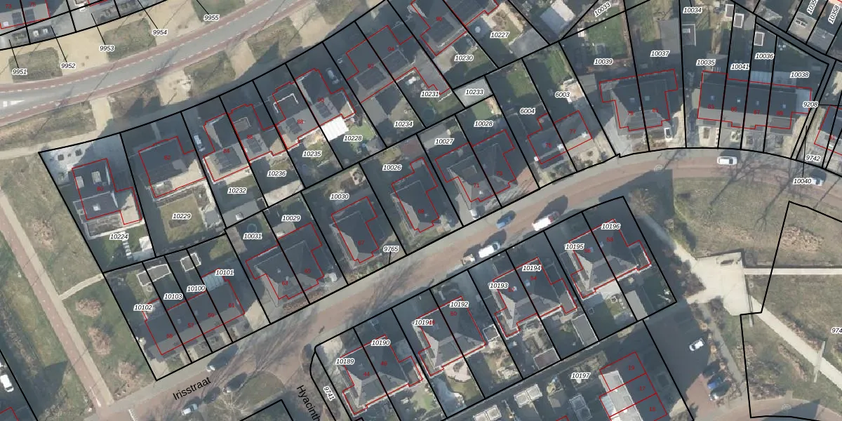 Het perceel waarop Irisstraat 69 staat heeft een oppervlakte van 378 m². Dit is een groot perceel. De perceeloppervlakte wordt geregistreerd door het Kadaster. Gedetailleerde informatie over de maten van dit perceel kunt u vinden in het rapport Kadastrale kaart met maatvoering van Irisstraat 69.