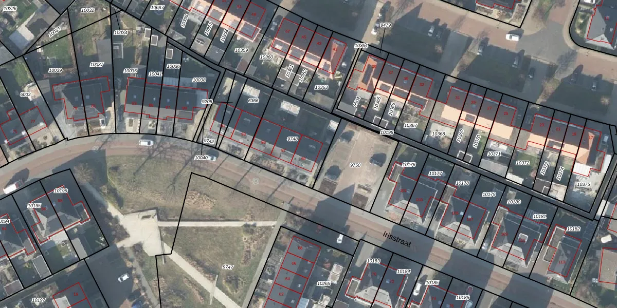 Het perceel waarop Irisstraat 99 staat heeft een oppervlakte van 600 m². Dit is een groot perceel. De perceeloppervlakte wordt geregistreerd door het Kadaster. Gedetailleerde informatie over de maten van dit perceel kunt u vinden in het rapport Kadastrale kaart met maatvoering van Irisstraat 99.