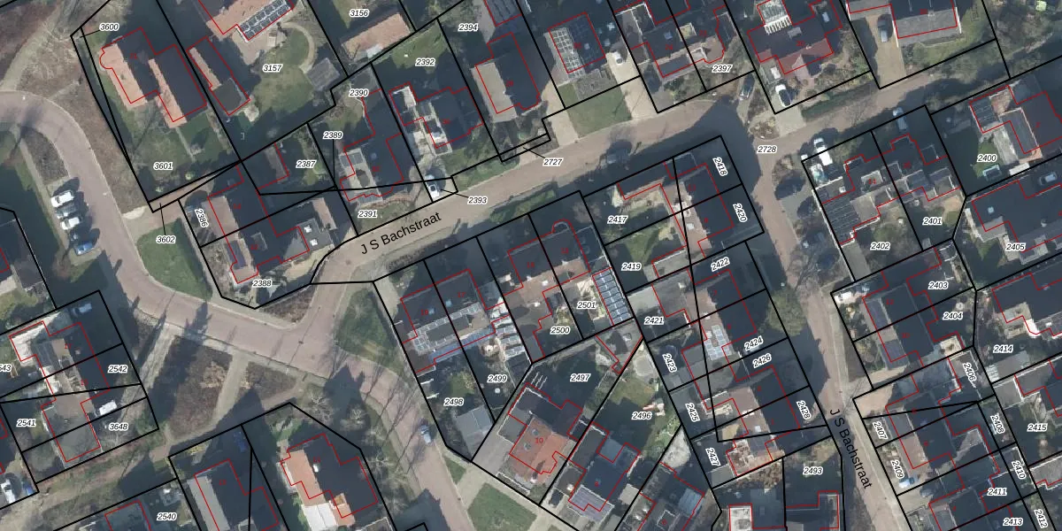 J S Bachstraat 15 is gelegen op kadastraal perceel LSR00N2500. Deze kadastrale aanduiding is uniek en wordt gebruikt door het Kadaster om eigendomsrechten en andere zakelijke rechten vast te leggen. Het perceel maakt onderdeel uit van de kadastrale gemeente Losser.