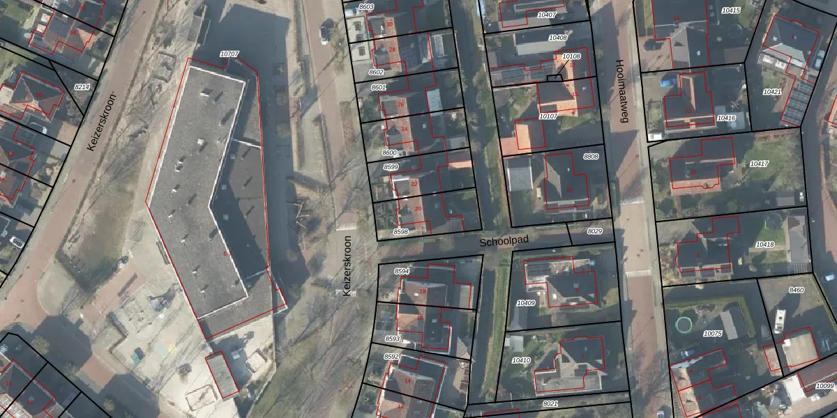 Het perceel waarop Keizerskroon 20 staat heeft een oppervlakte van 242 m². Dit is een middelgroot perceel. De perceeloppervlakte wordt geregistreerd door het Kadaster. Gedetailleerde informatie over de maten van dit perceel kunt u vinden in het rapport Kadastrale kaart met maatvoering van Keizerskroon 20.