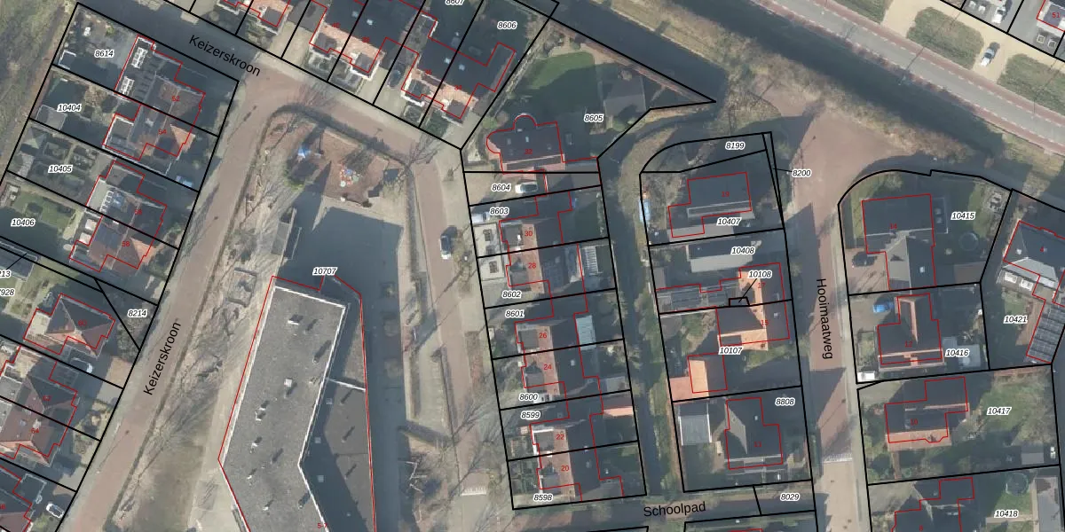 Het perceel waarop Keizerskroon 28 staat heeft een oppervlakte van 241 m². Dit is een middelgroot perceel. De perceeloppervlakte wordt geregistreerd door het Kadaster. Gedetailleerde informatie over de maten van dit perceel kunt u vinden in het rapport Kadastrale kaart met maatvoering van Keizerskroon 28.