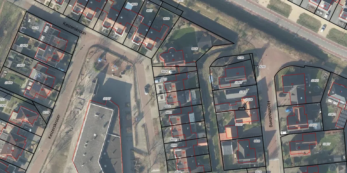 Keizerskroon 30 is gelegen op kadastraal perceel LSR00H8603. Deze kadastrale aanduiding is uniek en wordt gebruikt door het Kadaster om eigendomsrechten en andere zakelijke rechten vast te leggen. Het perceel maakt onderdeel uit van de kadastrale gemeente Losser.
