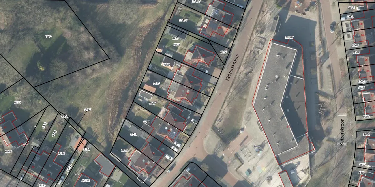 Het perceel waarop Keizerskroon 64 staat heeft een oppervlakte van 387 m². Dit is een groot perceel. De perceeloppervlakte wordt geregistreerd door het Kadaster. Gedetailleerde informatie over de maten van dit perceel kunt u vinden in het rapport Kadastrale kaart met maatvoering van Keizerskroon 64.