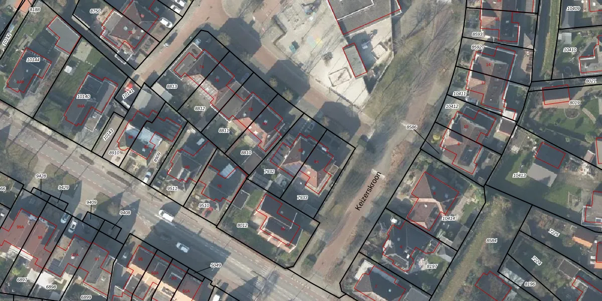 Het perceel waarop Keizerskroon 82 staat heeft een oppervlakte van 315 m². Dit is een groot perceel. De perceeloppervlakte wordt geregistreerd door het Kadaster. Gedetailleerde informatie over de maten van dit perceel kunt u vinden in het rapport Kadastrale kaart met maatvoering van Keizerskroon 82.