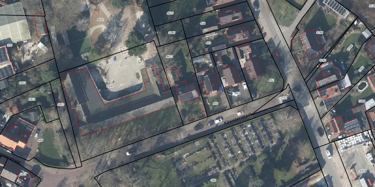 Het perceel waarop Kloosterstraat 15 staat heeft een oppervlakte van 655 m². Dit is een groot perceel. De perceeloppervlakte wordt geregistreerd door het Kadaster. Gedetailleerde informatie over de maten van dit perceel kunt u vinden in het rapport Kadastrale kaart met maatvoering van Kloosterstraat 15.