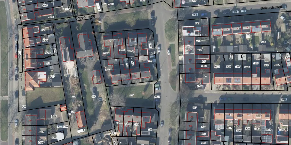 Het perceel waarop het adres ligt is LSR00-N-253. De afkorting 'LSR00' staat voor kadastrale gemeente Losser. Het perceel is kleiner dan gemiddeld in Losser. Het perceel is 210 m² groot, terwijl het gemiddelde ligt op 5708,64 m². Het grootste perceel in de kadastrale gemeente is 97,2 ha. Het kleinste perceel heeft een oppervlakte van 0 m². Er zijn geen andere adressen aanwezig op het perceel. De huidige grenzen van het perceel zijn digitaal in de Basisregistratie Kadaster (BRK) geregistreerd op 17-03-2000.