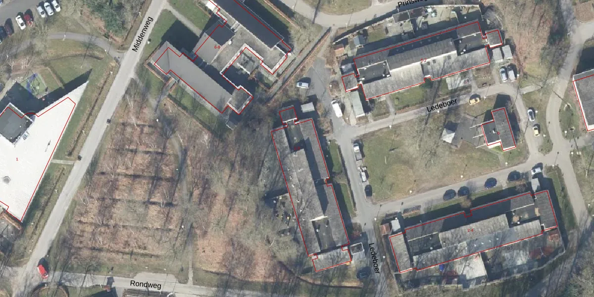 Het perceel waarop Ledeboer 3 staat heeft een oppervlakte van 34,3 ha. Dit is een zeer groot perceel. De perceeloppervlakte wordt geregistreerd door het Kadaster. Gedetailleerde informatie over de maten van dit perceel kunt u vinden in het rapport Kadastrale kaart met maatvoering van Ledeboer 3.