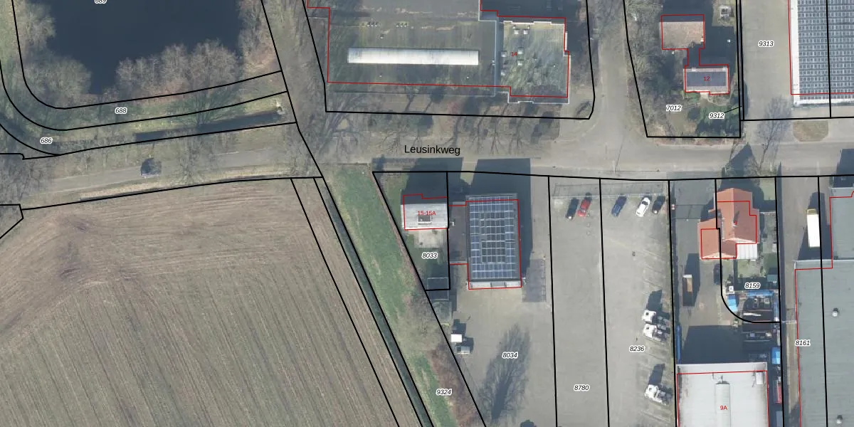 Leusinkweg 15-A is gelegen op kadastraal perceel LSR00I8033. Deze kadastrale aanduiding is uniek en wordt gebruikt door het Kadaster om eigendomsrechten en andere zakelijke rechten vast te leggen. Het perceel maakt onderdeel uit van de kadastrale gemeente Losser.