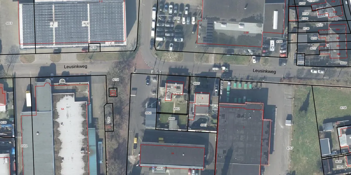 Leusinkweg 5 is gelegen op kadastraal perceel LSR00I8951. Deze kadastrale aanduiding is uniek en wordt gebruikt door het Kadaster om eigendomsrechten en andere zakelijke rechten vast te leggen. Het perceel maakt onderdeel uit van de kadastrale gemeente Losser.