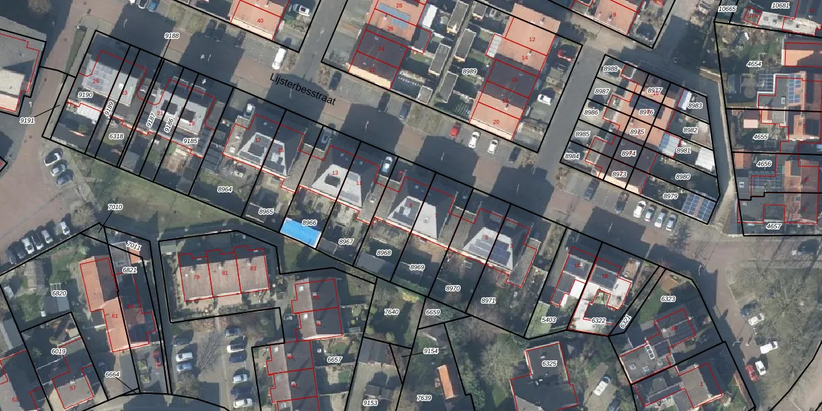 Het perceel waarop Lijsterbesstraat 9 staat heeft een oppervlakte van 287 m². Dit is een middelgroot perceel. De perceeloppervlakte wordt geregistreerd door het Kadaster. Gedetailleerde informatie over de maten van dit perceel kunt u vinden in het rapport Kadastrale kaart met maatvoering van Lijsterbesstraat 9.