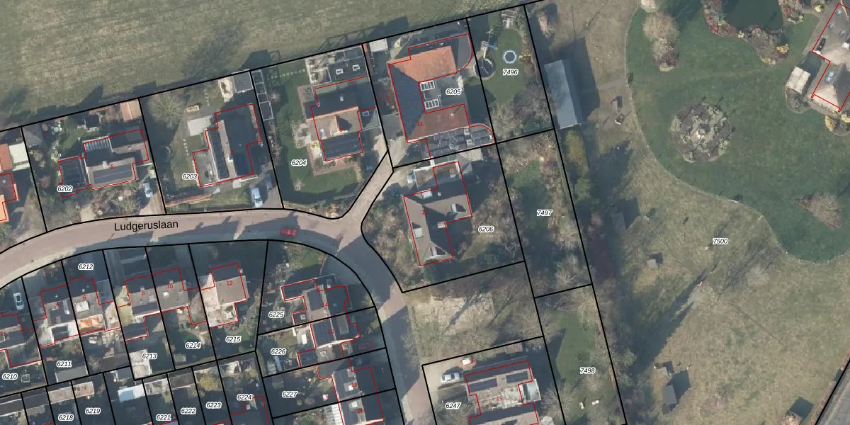 Ludgeruslaan 13 is gelegen op kadastraal perceel LSR00H6206. Deze kadastrale aanduiding is uniek en wordt gebruikt door het Kadaster om eigendomsrechten en andere zakelijke rechten vast te leggen. Het perceel maakt onderdeel uit van de kadastrale gemeente Losser.