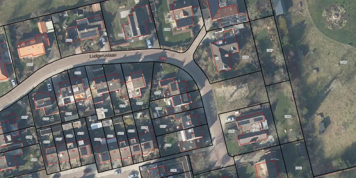 Ludgeruslaan 14 is gelegen op kadastraal perceel LSR00H6225. Deze kadastrale aanduiding is uniek en wordt gebruikt door het Kadaster om eigendomsrechten en andere zakelijke rechten vast te leggen. Het perceel maakt onderdeel uit van de kadastrale gemeente Losser.