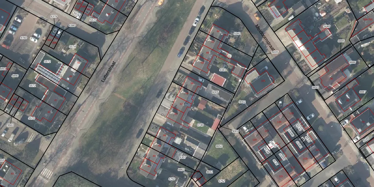 Het perceel waarop Lutterstraat 54 staat heeft een oppervlakte van 1010 m². Dit is een zeer groot perceel. De perceeloppervlakte wordt geregistreerd door het Kadaster. Gedetailleerde informatie over de maten van dit perceel kunt u vinden in het rapport Kadastrale kaart met maatvoering van Lutterstraat 54.