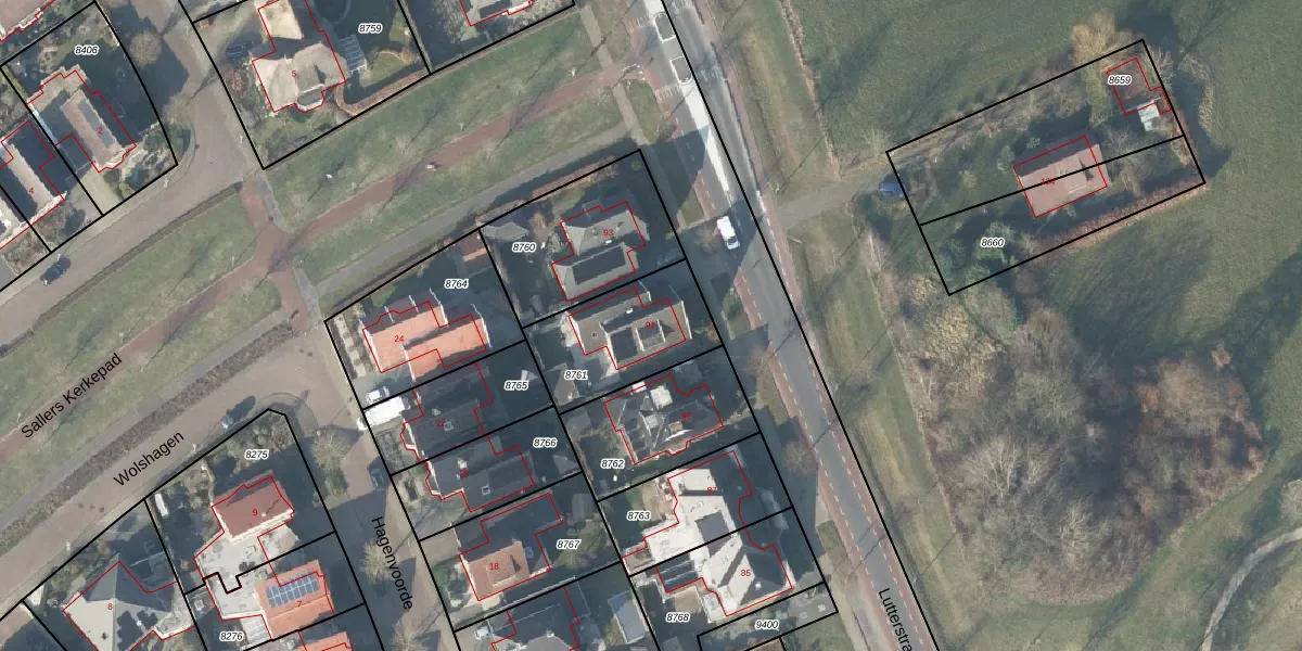 Lutterstraat 91 is gelegen op kadastraal perceel LSR00H8761. Deze kadastrale aanduiding is uniek en wordt gebruikt door het Kadaster om eigendomsrechten en andere zakelijke rechten vast te leggen. Het perceel maakt onderdeel uit van de kadastrale gemeente Losser.