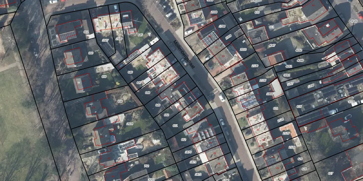 Het perceel waarop Möllenbergstraat 16 staat heeft een oppervlakte van 259 m². Dit is een middelgroot perceel. De perceeloppervlakte wordt geregistreerd door het Kadaster. Gedetailleerde informatie over de maten van dit perceel kunt u vinden in het rapport Kadastrale kaart met maatvoering van Möllenbergstraat 16.