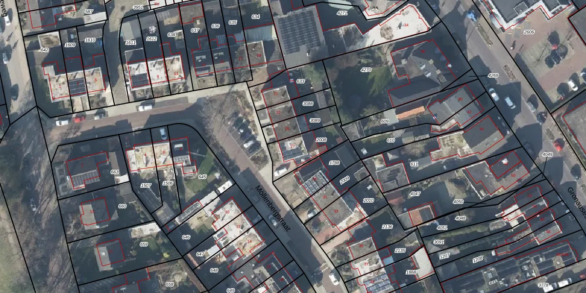 Het perceel waarop Möllenbergstraat 27 staat heeft een oppervlakte van 262 m². Dit is een middelgroot perceel. De perceeloppervlakte wordt geregistreerd door het Kadaster. Gedetailleerde informatie over de maten van dit perceel kunt u vinden in het rapport Kadastrale kaart met maatvoering van Möllenbergstraat 27.