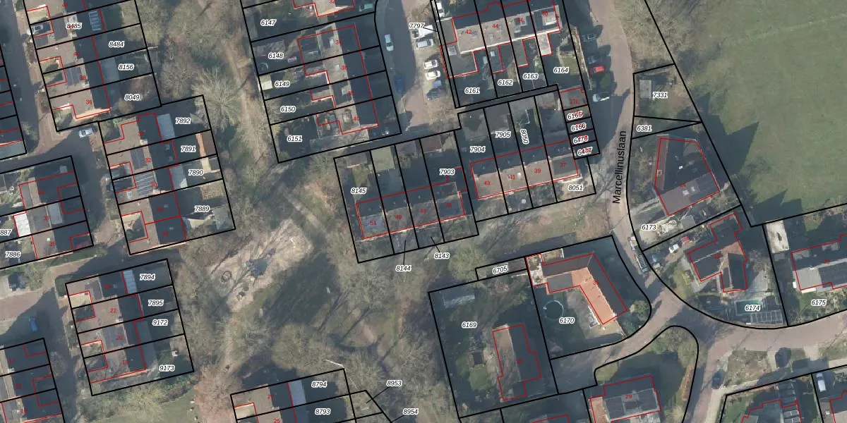 Het perceel waarop Marcellinuslaan 47 staat heeft een oppervlakte van 151 m². Dit is een middelgroot perceel. De perceeloppervlakte wordt geregistreerd door het Kadaster. Gedetailleerde informatie over de maten van dit perceel kunt u vinden in het rapport Kadastrale kaart met maatvoering van Marcellinuslaan 47.